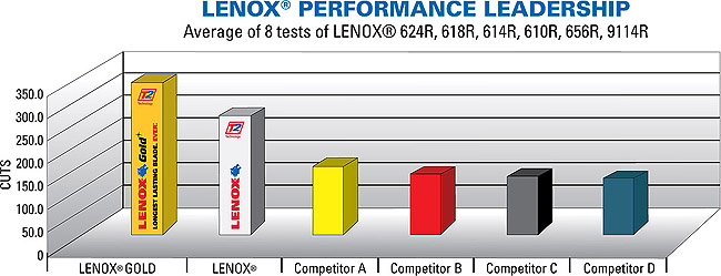 革新的な刃の設計により、LENOX の従来の往復式のこぎり刃と比較して、金属切削用途における刃の耐用期間が 100% 伸びただけでなく、速度も 25% 向上しました。
